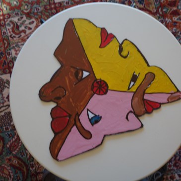 acrylique, feutre, collages sur calendrier bancaire 55cmx40cm