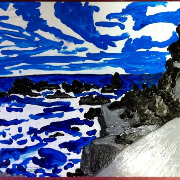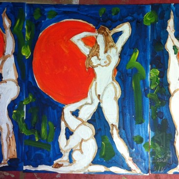 Triptyque acrylique sur 3 calendriers bancaires 40cmx55cm (x3)
