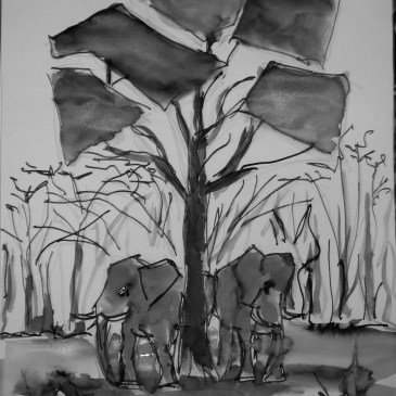 Cerisier en fleurs 15 avril 2016 Technique mixte crayon, aquarelle et feutre sur papier Daler Rowney A3
