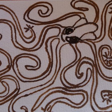 Petite étude format 12×18 cm encre sépia sur papier à aquarelle Royal Langnickel Octopus and sea cuncumbers Small study size 12×18 cm sepia ink on Royal Langnickel watercolor paper