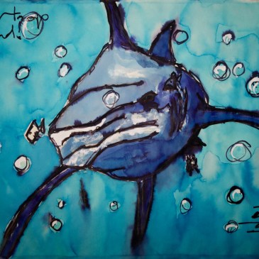Lavis d’encre noire, bleu outremer et turquoise sur papier Daler Rowney format A3 It’s too late ! Black, ultramarine and turquoise ink wash on A3 Daler Rowney paper Je vous explique le titre, c’est un plongeur débutant, qui a de la buée dans son masque (image floue), qui s’est bien agité, qui fait un essoufflement … Lire la suite Il est trop tard !