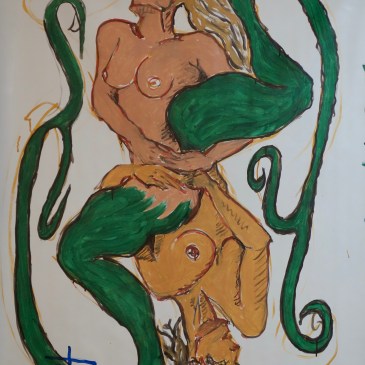 acrylique sur toile cirée format 1,10mx1,40m The little mermaid sleeps acrylic on oilcloth format 1,10mx1,40m