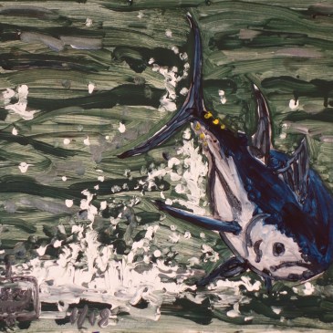 acrylique sur carton format 55cmx40cm A yellowfin tuna jumps acrylique on cardboard size 55cmx40cm