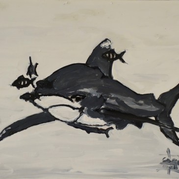 acrylique sur carton format 55cmx40cm A longimanus shark with a remra and its pilots fishs acrylique on cardboard size 55cmx40cm