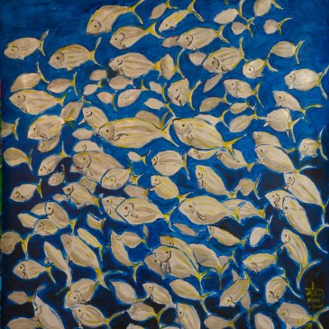 acrylique sur toile cirée format 1,20mx1,40m collection particulière schools of Mediterranean bream acrylic on waxed canvas size 1,20mx1,40m