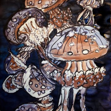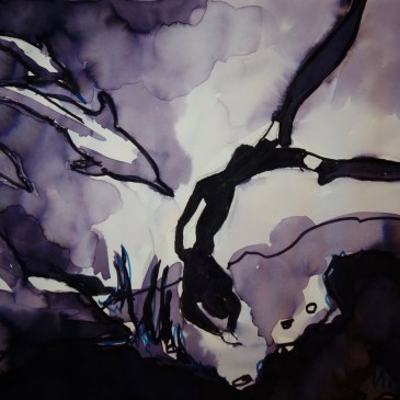 Lavis d’encre noire, sépia et turquoise sur papier Canson 90g format A3 Gelly fish Ink wash of black, sepia and turquoise ink on Canson 90g A3 paper