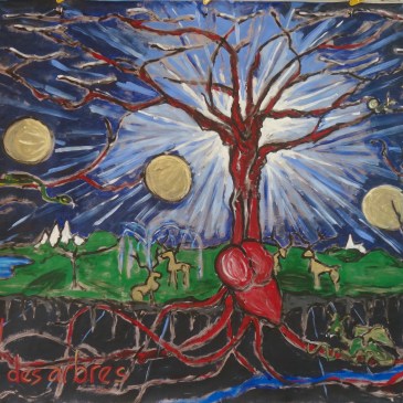 acrylique sur toile cirée format 2,20mx1,40m Yggdrasil the trees king Acrylic on oilcloth format 2,20mx1,40m