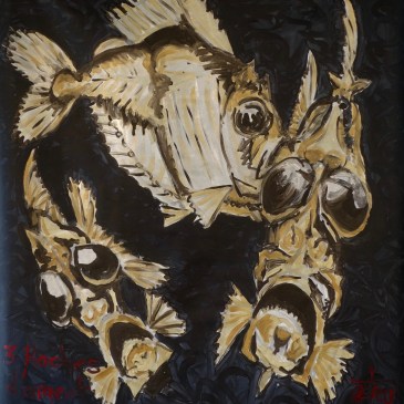 Sternoptyx diaphana Acrylique sur toile cirée, format 1,10mx1,40m Tree silver abyss hatchetfish Acrylic on oilcloth, size 1,10mx1,40m