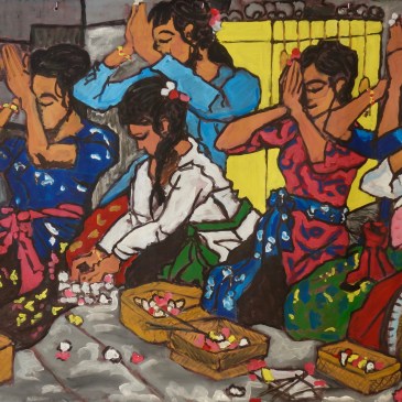 Full moon party in Bali Fiesta de luna llena en Bali Vollmondparty in Bali Festa de la lluna plena a Bali acrylique 2,20mx1,40m sur toile cirée Acrylic 2,20mx1,40m on oilcloth Acryl 2,20mx1,40m auf Wachstuch Acrílico 2,20mx1,40m an mantel an hule