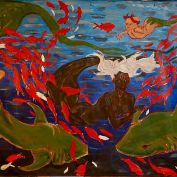 acrylique 2,10mx1,40m Yemanjà (Yemania, Iemanja, Simbi, Manman Dlo) Un culte spécial lui est consacré en Amérique Latine et dans les caraïbes. En Haïti, elle est appelée Simbi, on l’appelle Manman Dlo en Guadeloupe et en Martinique. Yemanja est plus usité à Cuba ou au Brésil. C’est la mère des eaux, déesse crainte des pêcheurs, elle … Lire la suite Yemanjà
