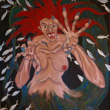 acrylique 1,10mx1,40m Margygr ou Magygr Pour les Scandinaves, la sirène est un monstre redoutable appelé Margygr (la «géante de mer»). L’œuvre norvégienne le Konungs Skuggsjà la décrit comme une avenante créature ressemblant à «une femme en haut de la ceinture, car ce monstre avait de gros mamelons sur la poitrine, comme une femme, de longs … Lire la suite Margygr