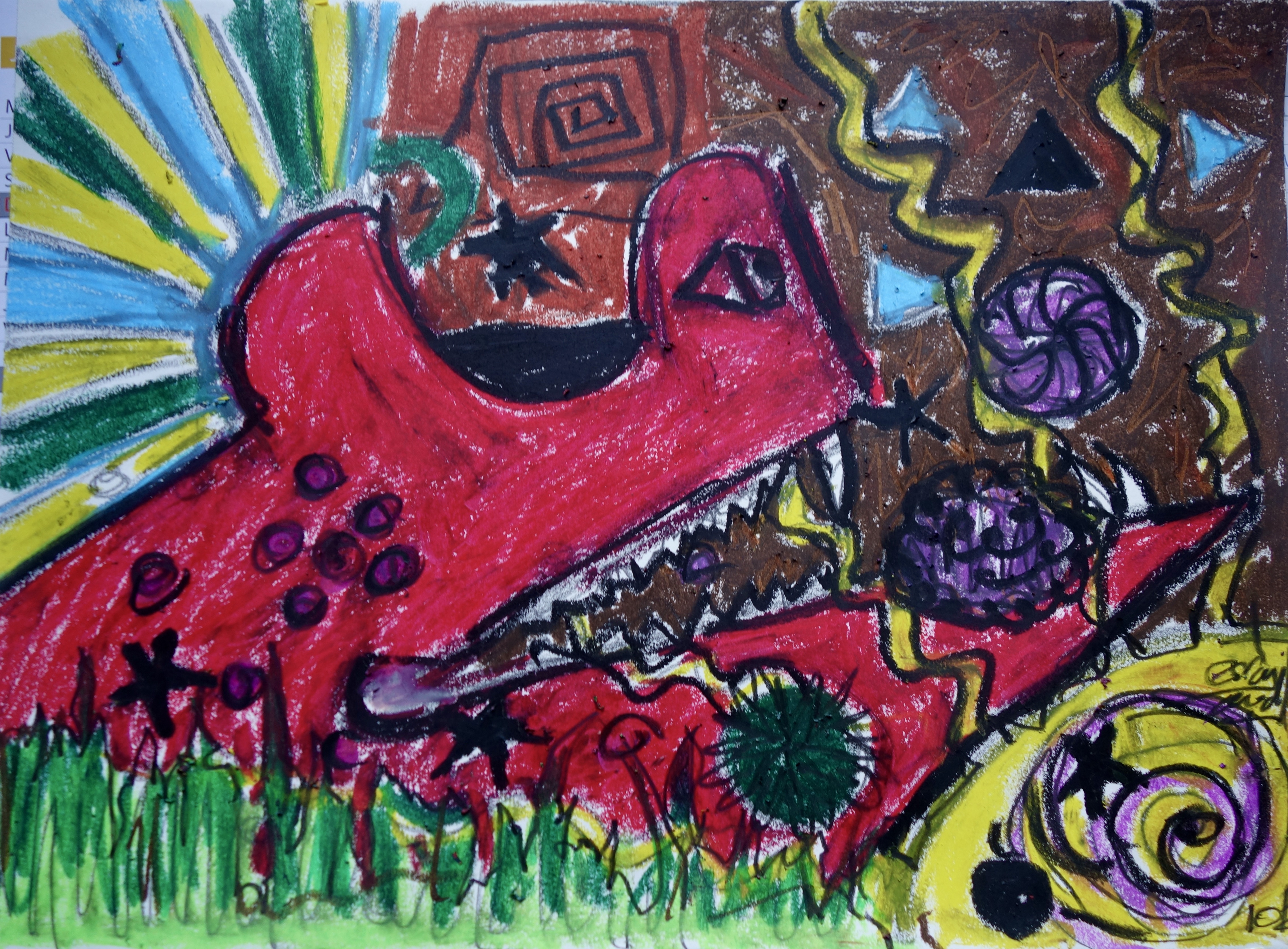 c’est pour moi un mélange de monstre glaireux, fulgurant et dévorant, une sorte de de Kappa (voir mythologie japonaise).
