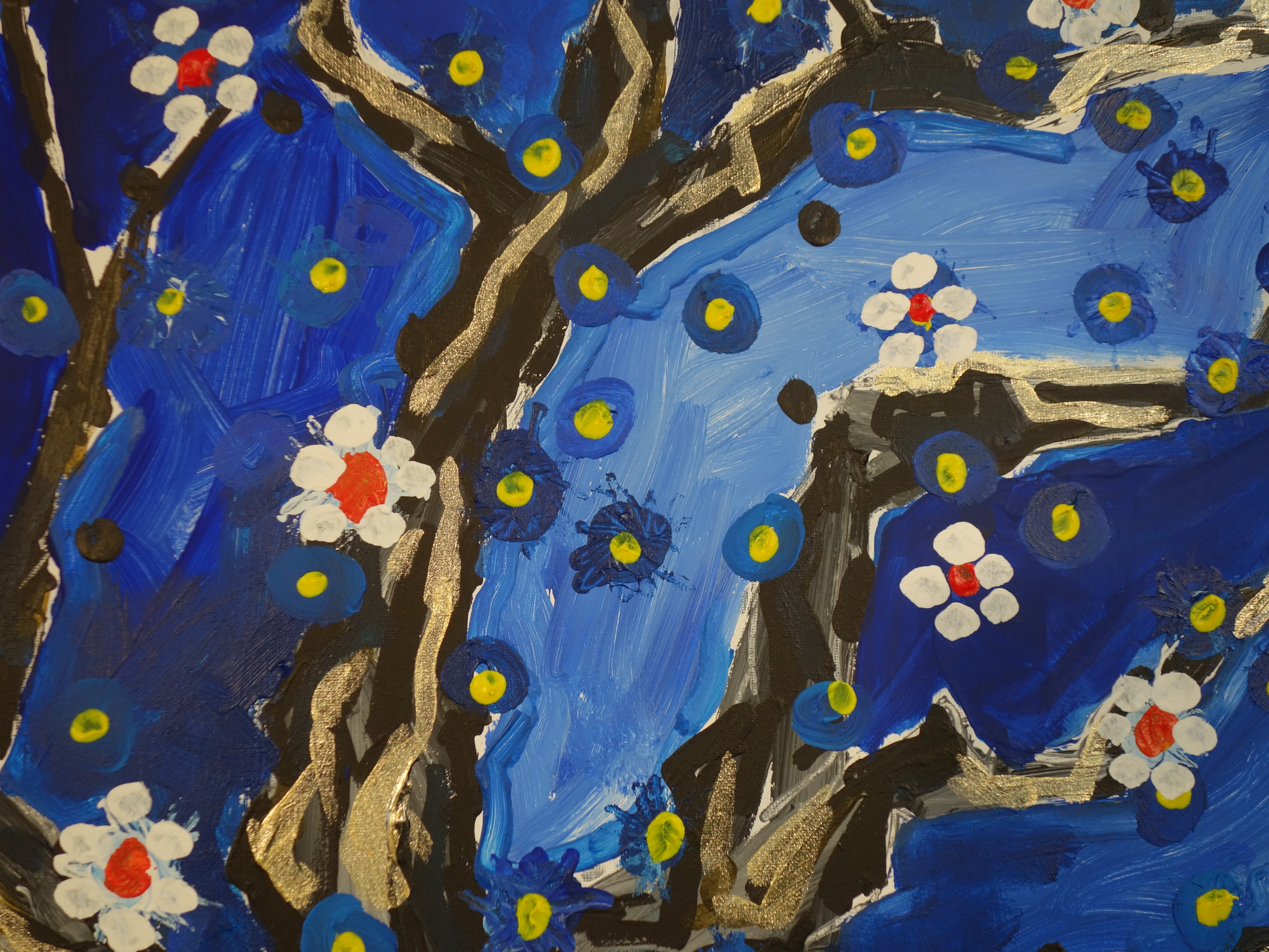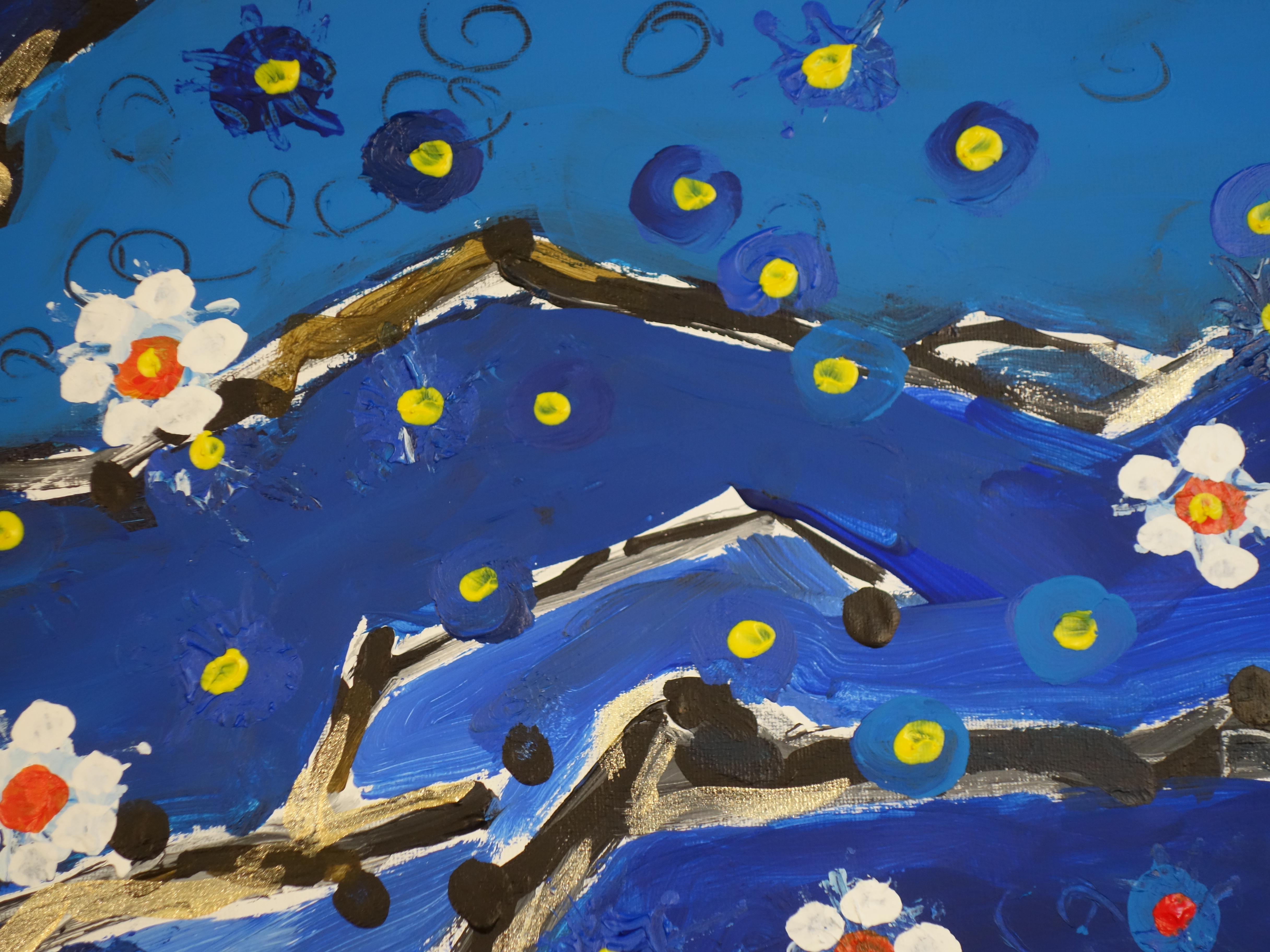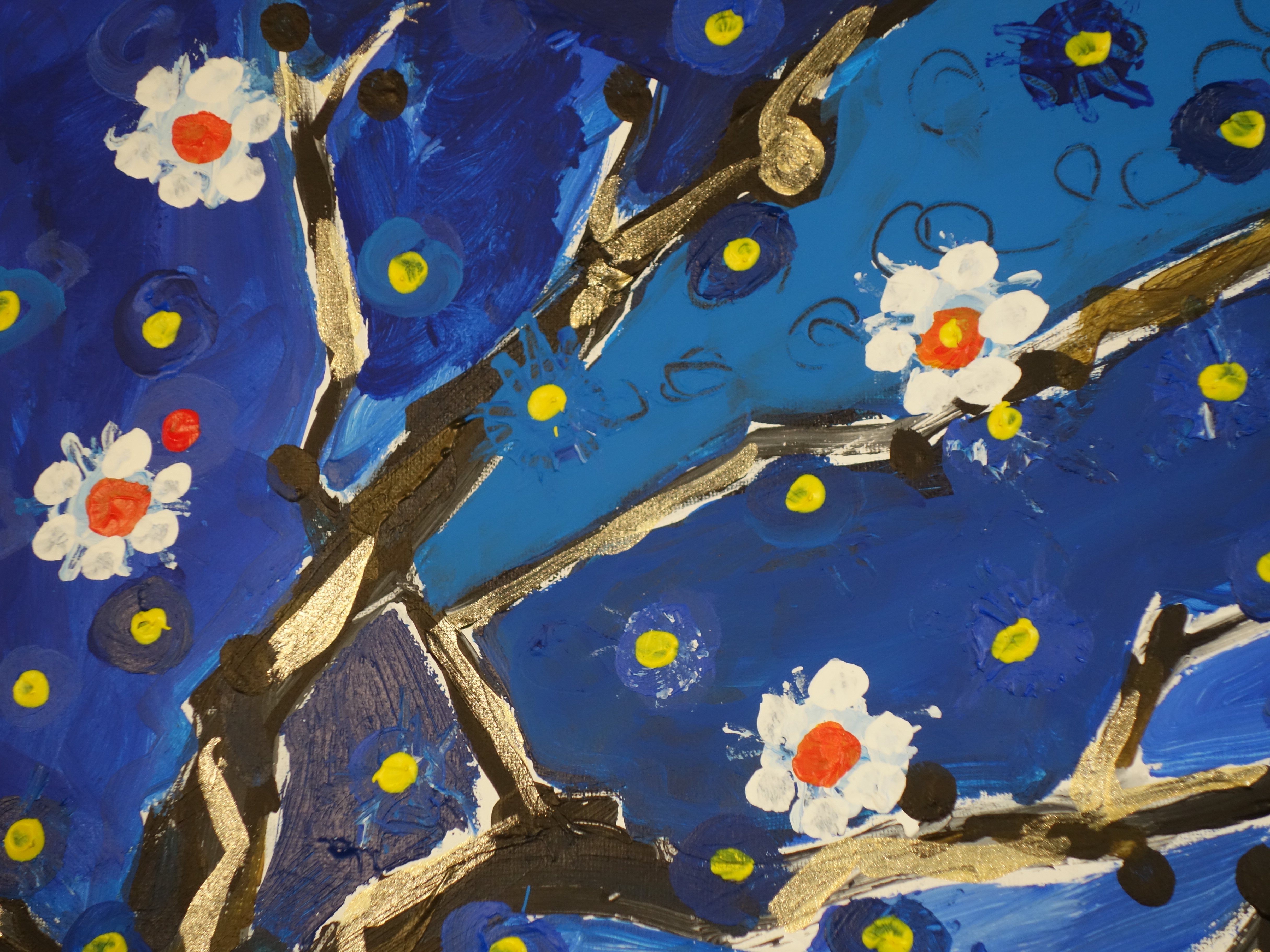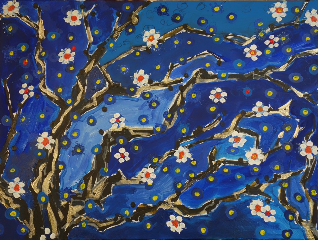 As spring arrives, the angular, metallic skeleton of the branches begins to cover in bloom. The still fragile flowers mingle with the stars that shine in the cold night sky. life is reborn.