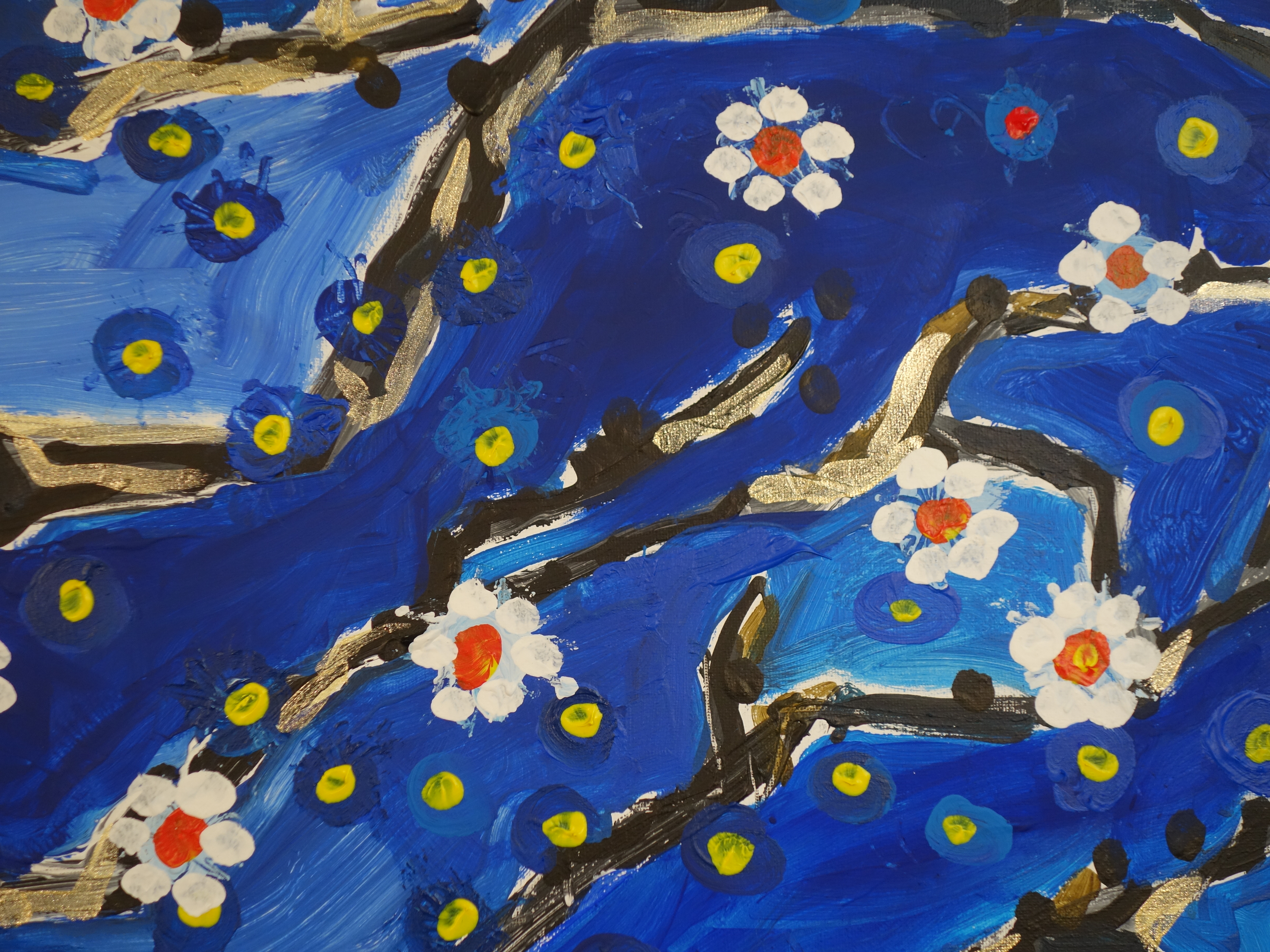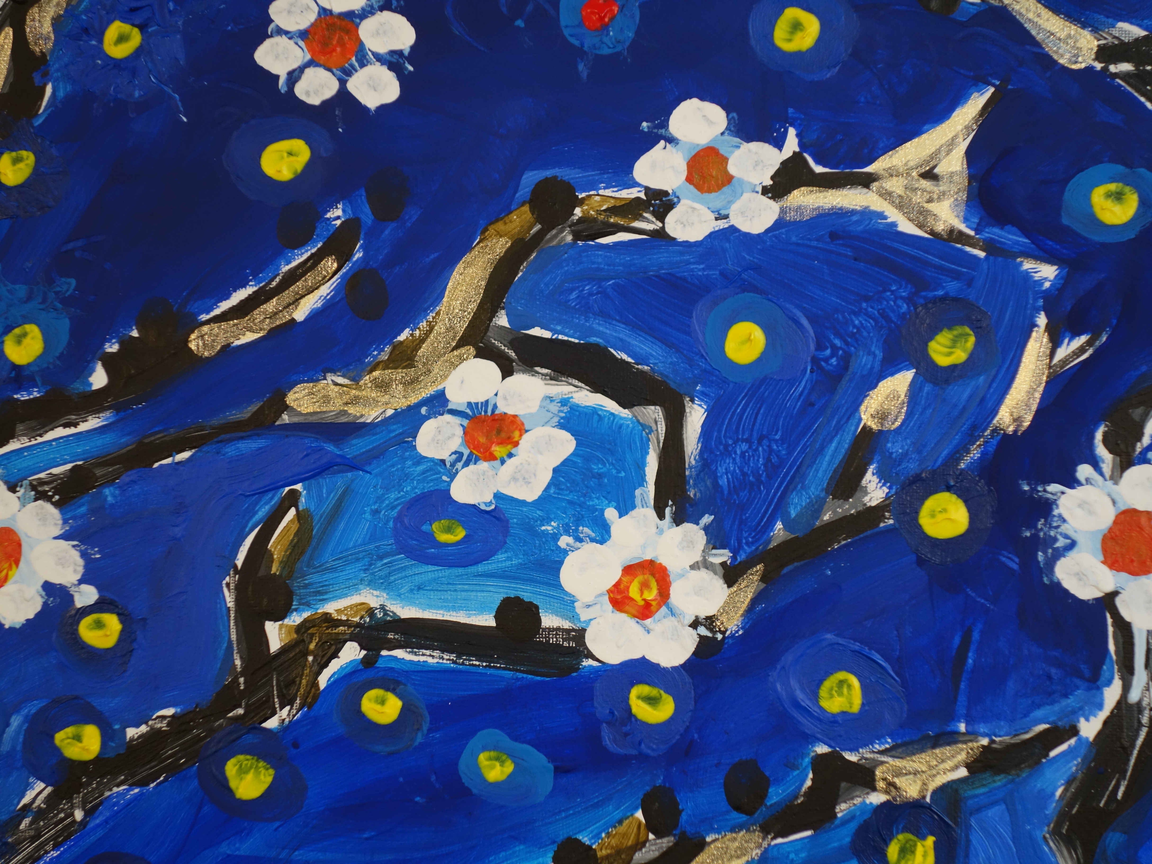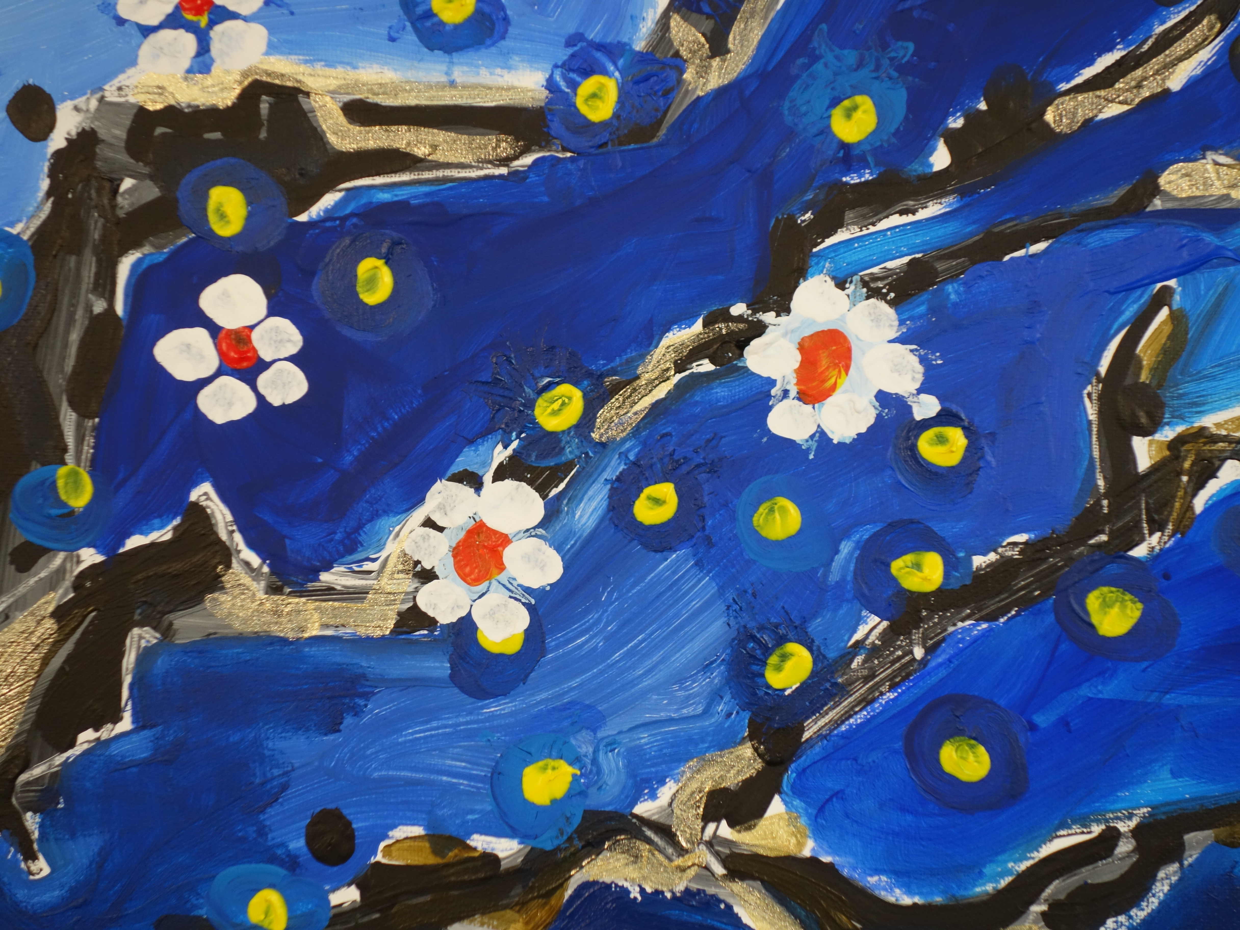 As spring arrives, the angular, metallic skeleton of the branches begins to cover in bloom. The still fragile flowers mingle with the stars that shine in the cold night sky. life is reborn.