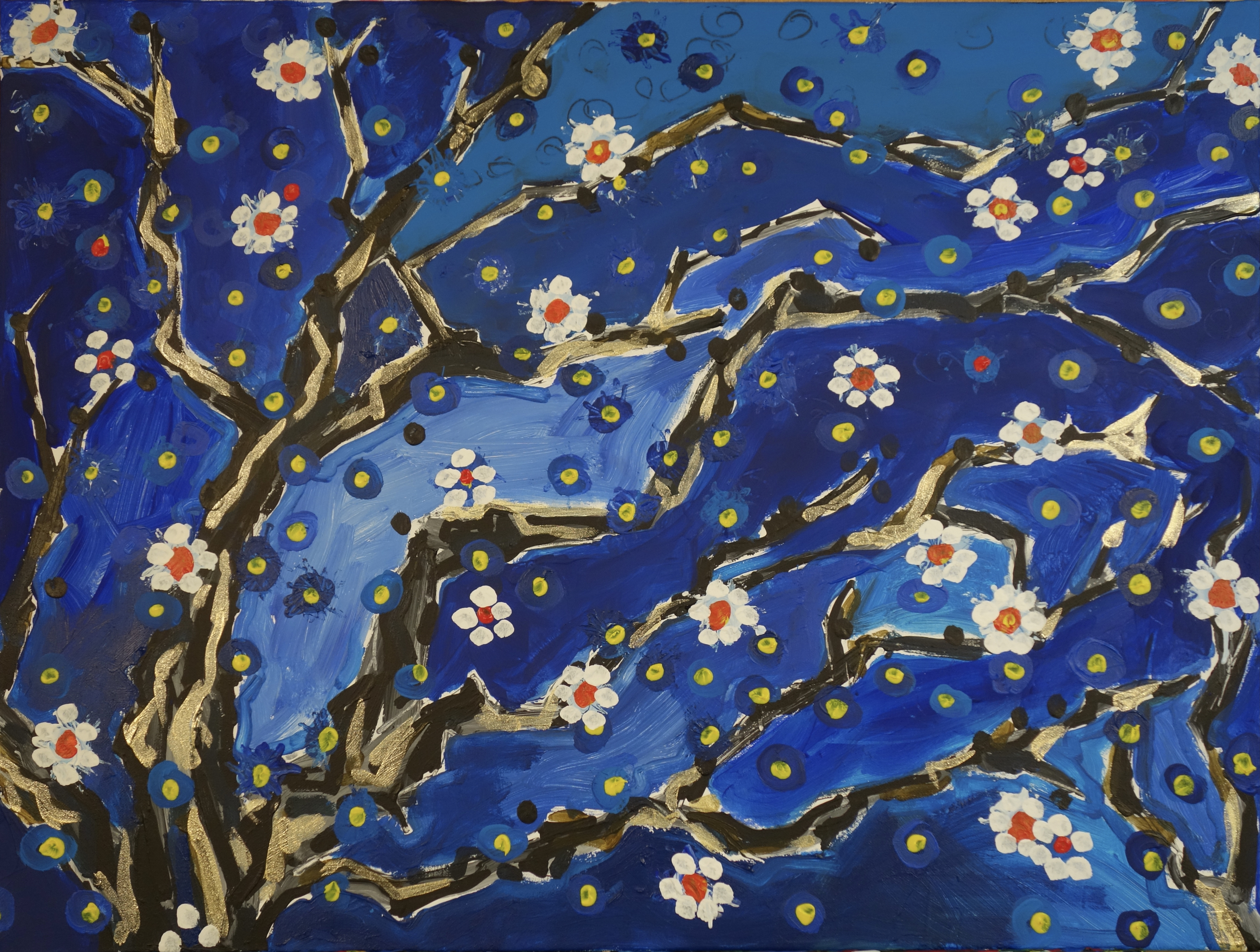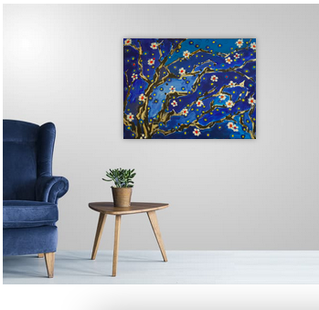 As spring arrives, the angular, metallic skeleton of the branches begins to cover in bloom. The still fragile flowers mingle with the stars that shine in the cold night sky. life is reborn.