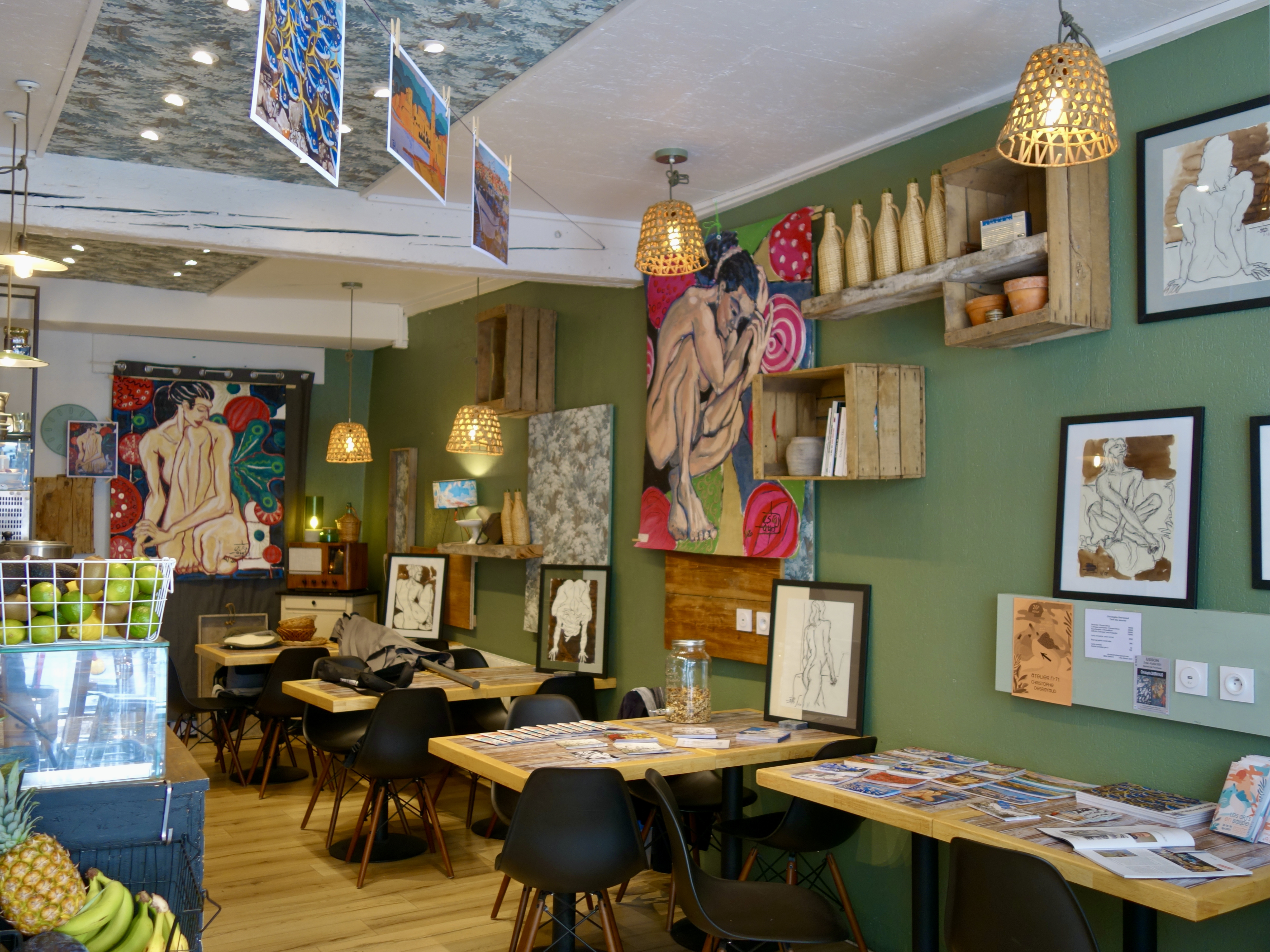 J’expose au 3 rue des Chaussetiers à deux pas de la cathédrale de Clermont (emplacement numéro 71 sur le guide), on ne peut pas être plus central au restaurant Kaki.