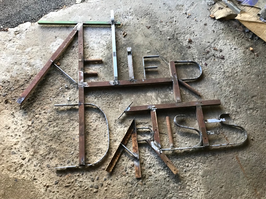 Voici toutes les étapes de la réalisation de l’enseigne de l’atelier, soyez indulgent, ce sont mes premières soudures.