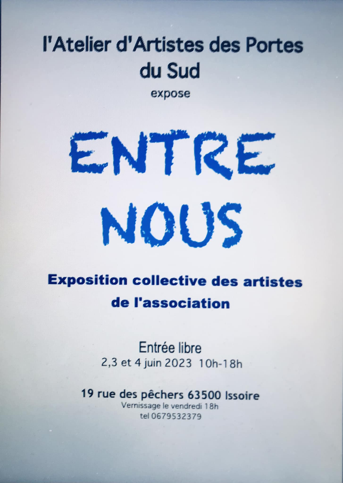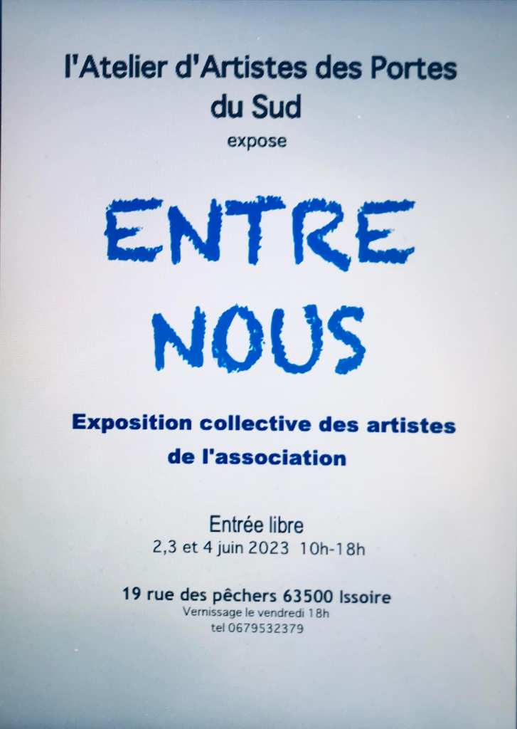 Nouvelle exposition à l’atelier Publié le 31 Mai 2023 par Christophe DESRAYAUD https://www.google.fr/maps/place/Atelier+des+Portes+du+Sud/@45.5475455,3.2440184,17.91z/data=!4m6!3m5!1s0x47f65588f289f5bf:0xceea7d5d69db9ab6!8m2!3d45.5481591!4d3.2438407!16s%2Fg%2F11ss2fw4h2?entry=ttu Partager : Cliquez pour partager sur Facebook(ouvre dans une nouvelle fenêtre) Facebook Cliquer pour envoyer un lien par e-mail à un ami(ouvre dans une nouvelle fenêtre) E-mail Cliquez pour partager sur LinkedIn(ouvre dans une nouvelle fenêtre) LinkedIn Cliquez pour partager sur Tumblr(ouvre dans une nouvelle fenêtre) Tumblr J’aime chargement… Similaire