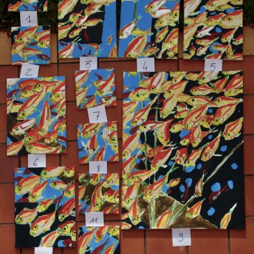 https://www.singulart.com/fr/oeuvres-d-art/christophe-desrayaud-combattants-républicains-1627829 Acrylique sur toile sur chassis.Les combattants sont une variété de poissons très agressifs avec leurs congénères, il suffit d’en placer deux dans un aquarium pour qu’un combat à mort démarre.Républicains…. Parce que le tableau est bleu-blanc-rouge comme le drapeau Français.