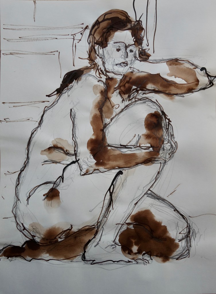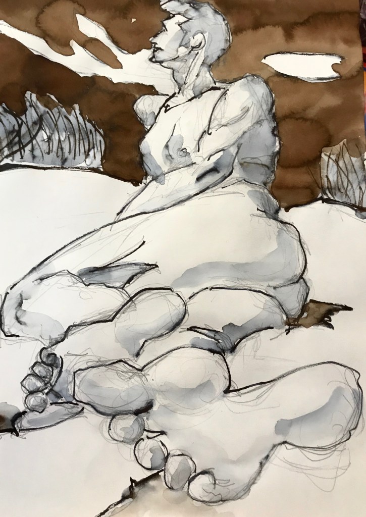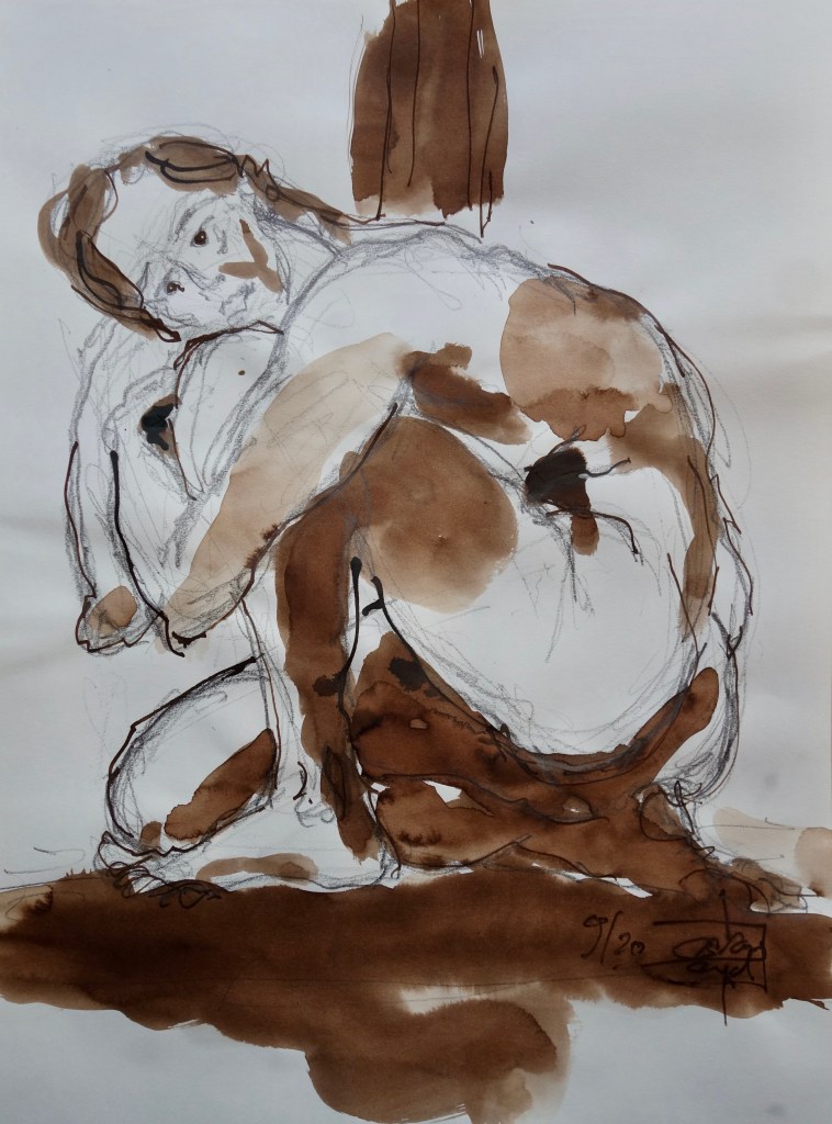 nu numéro 48 lavis encre Mont Blanc sur papier Daler Rowney format A3 collection particulière