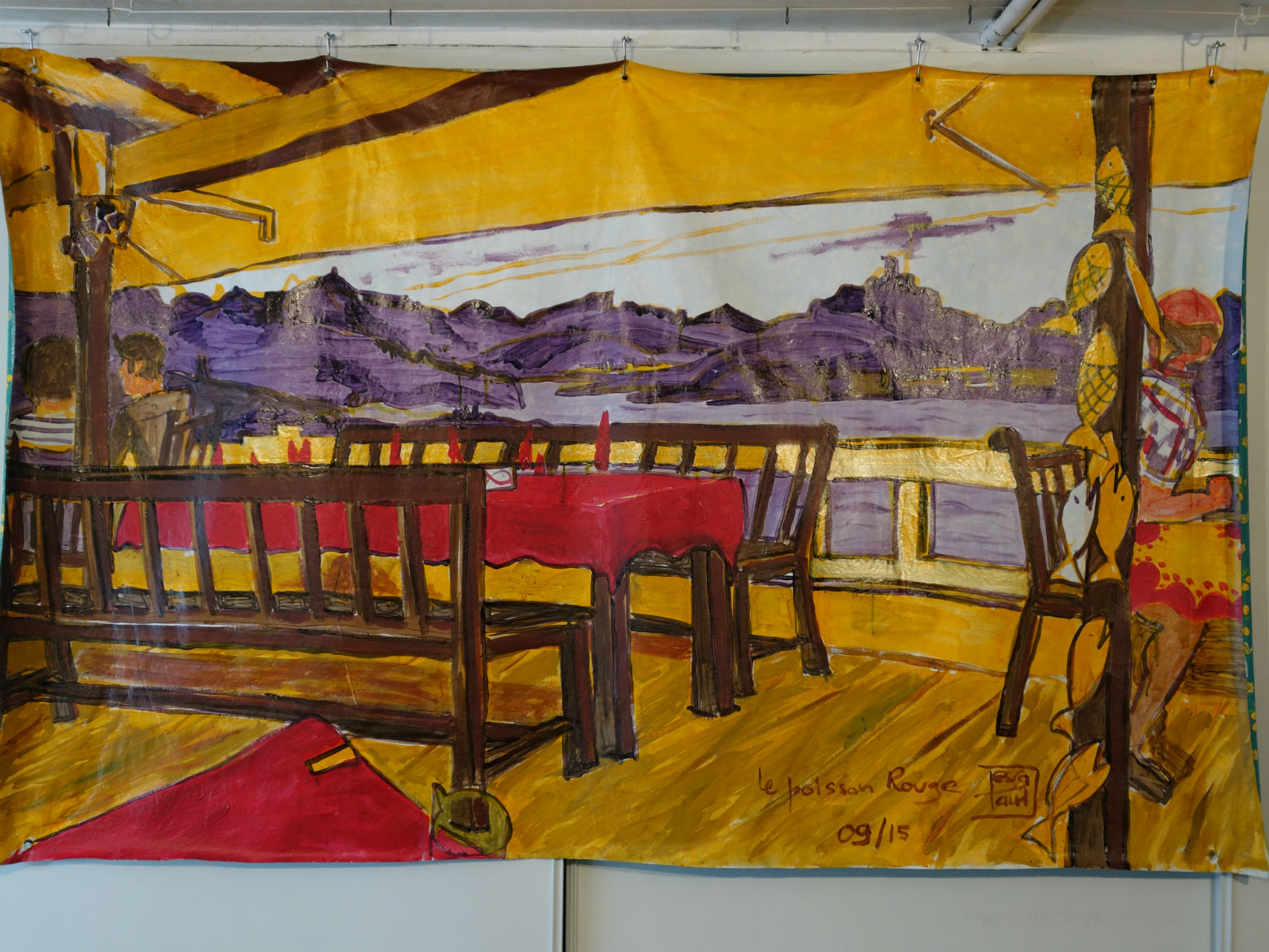Le Miradou à quai acrylique sur toile cirée 2,50mx1,40m