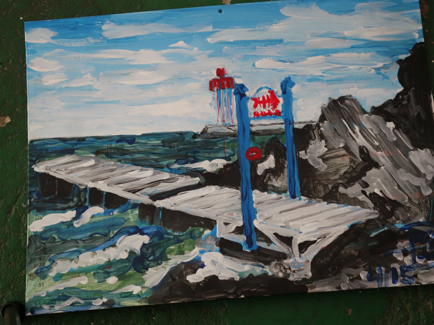 SANTA MANZA en cale sèche, acrylique sur toile cirée 2,10×1,40m